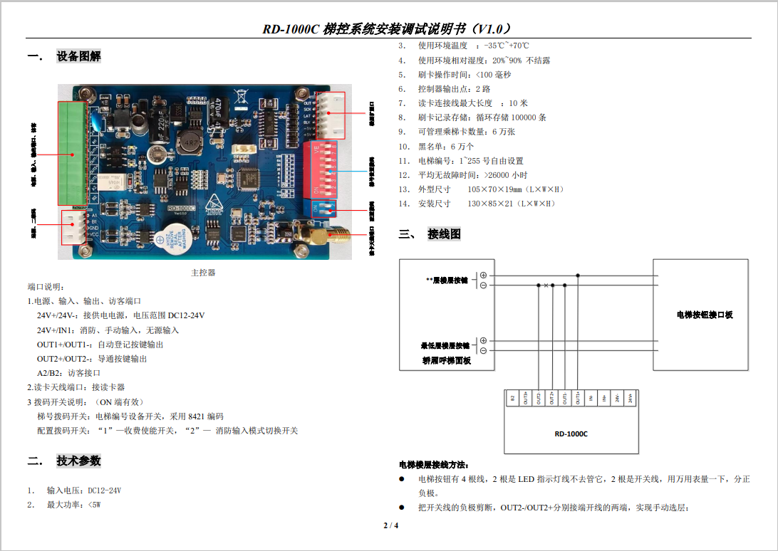 RD-2000A 梯控系統(tǒng)安裝調(diào)試說明書(V1.1)